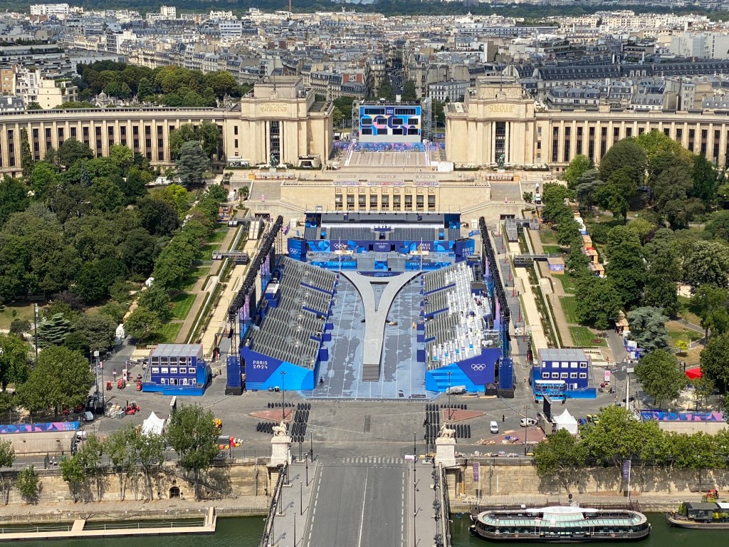 Two days before the ceremonies I did a ton of exploring to figure out where to see the ceremonies without a ticket, which cost more than I wish to pay. About 10 days ago I applied for and received a pass jeux. This is a QR code that arrived in an email, and allows me into the gray zones. These are the areas right along the river which include the seating for the ceremonies. I’ve been exploring with my pass jeux, which gets me through the checkpoints into these areas. I’m counting on being able to do that for the opening. Even though I won’t have a seat, it’s fine with me to just stand somewhere and watch.