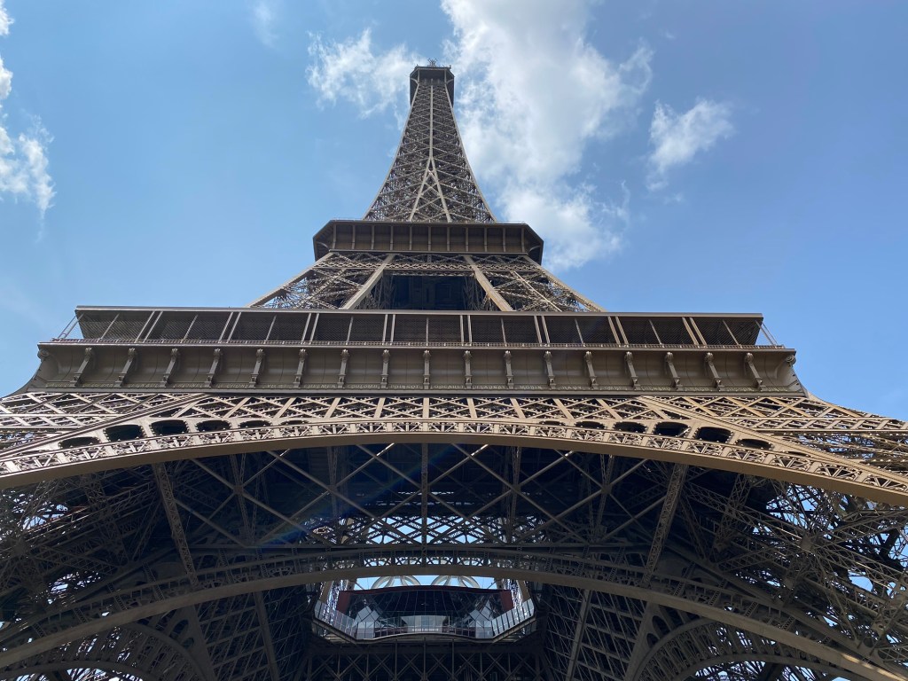 On J-2 I took the Metro from my Air BnB in the 15th arrondissement up to Grenelle, got off and started walking and getting to know the area. I encountered my first checkpoint where they scanned my pass and let me in. This was great because there were hardly any other people walking and no traffic. The Eiffel Tower was nearby and knowing that the boat parade will wind up near there, I scoped out a few viewing areas. Then I decided to take a little walk up to the second level. Unusual that there was no waiting, even for the elevator, but I took the stairs anyway. After about 17 minutes of climbing I arrived. This level has great views as shown below: